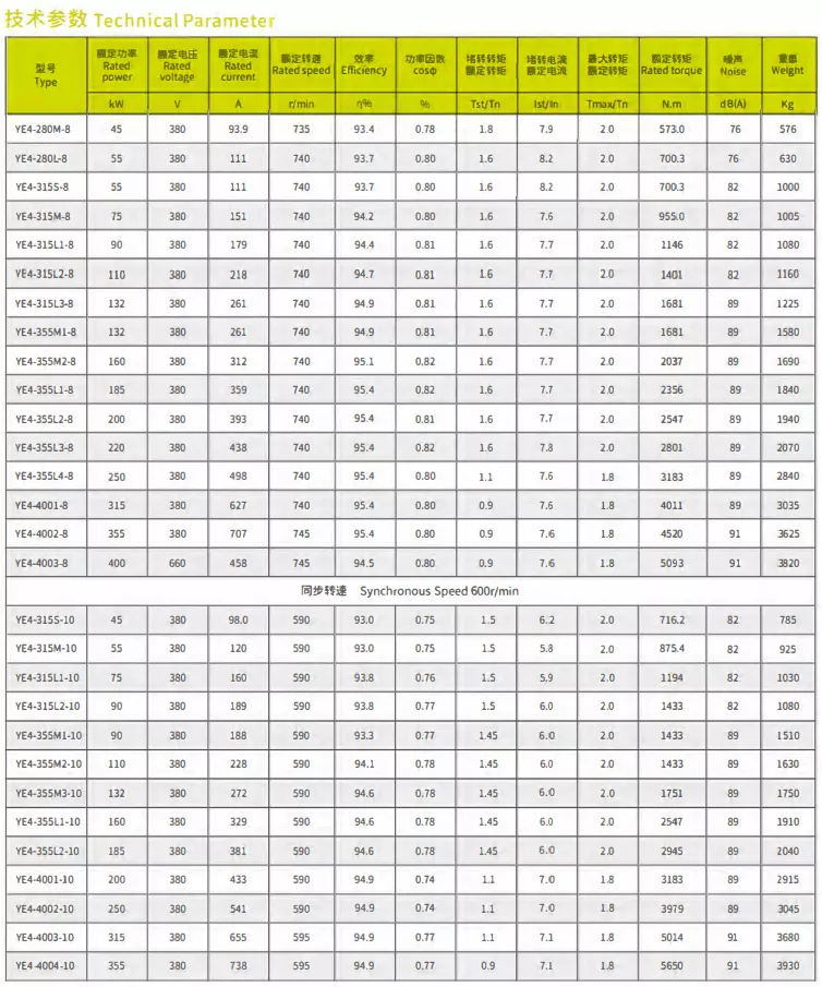 本系列电动机是我公司自主研发的高效节能三相异步电动机,冷却方式为:IC411,电机性能满足GB/T755《旋转电动机定额和性能》和JB/T13299《YE4系列
